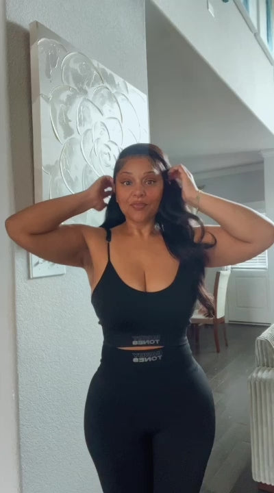 OUR BRA TOP HAS A REMOVABLE PADDING. THIS PADDING GIVES SUPPORT AS WELL AS COVERS THE IMPRINT FOR THE WOMANS BODY. YES, IT HAS AN AMAZING STRETCH, EACH SIZE CAN BE STRECHED 1 SIZE BIGGER, BECAUSE ITS SO STRETCHY, BUT FITTED AT THE SAME TIME. OUR BRA TOPS HAVE ADJUSTABLE STRAPS FOR COMFORTABILITY. The straps are THIN which is why it’s call spaghetti strap. We posted an active picture to show you that even when you are moving aggressively the bra keeps you locked in. The legging can be worn by taller models. Our model is 5ft 6’ wears bra size 36DD / F80 Model is wearing a size medium bra top